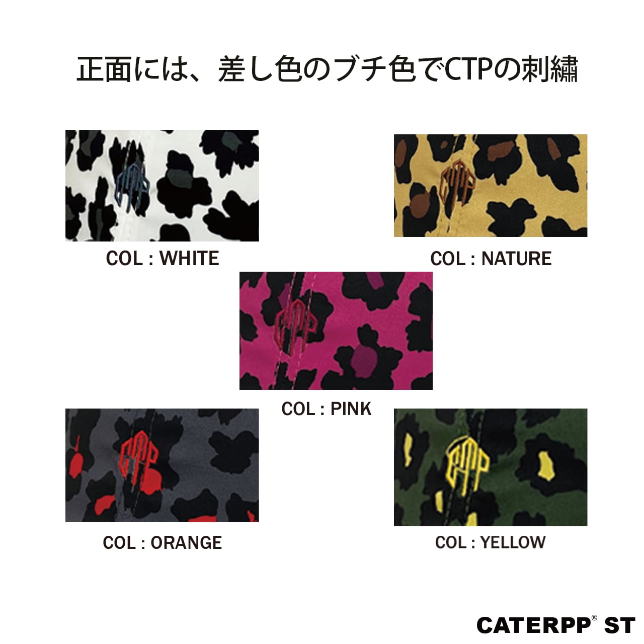 ヒョウ柄をベースに5色展開。
